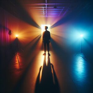 «A silhouette of a person standing in a sunlit area, casting a sh...»