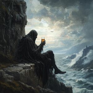 «Reaper drinking a glass of scotch on the rocks enjoying the view...»