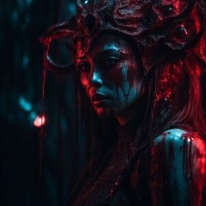 «A menacing crystalline alien with serpentine hair covered in blo...»