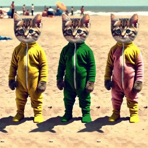 «Create an image of three adorable cream gray kittens dressed in...»