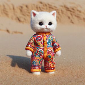 «Create an image of three adorable kittens dressed in vibrant, mu...»