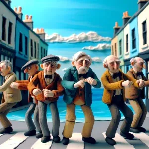 «there are 2 or 3 old man doing the ´Horlepiep¨ on a street, with...»