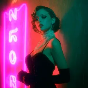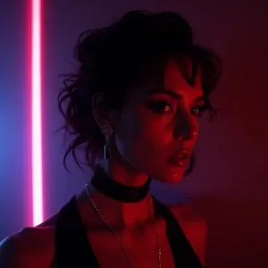 «“noir neon femme-fatale aesthetic, cinematic lighting, deep shad...»