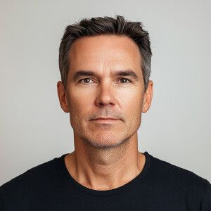 «A middle-aged Caucasian American man, 53 years old, with a clean...»