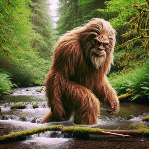 «Create an image of a Sasquatch blending Neanderthal features, li...»