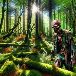 «Clear vivid hyper-realistic photo of a zombie in the woods»