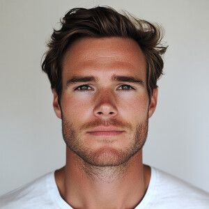 «Middle-aged Caucasian American man with an average appearance, m...»