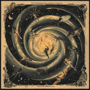 «"Extraterrestrial beings tumbling through a swirling vortex repr...»