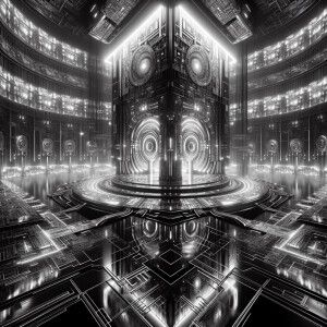 «In a shadowy virtual realm, a foreboding digital teleportation h...»