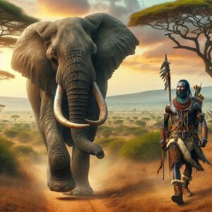 «elephant with a worrior walking together»