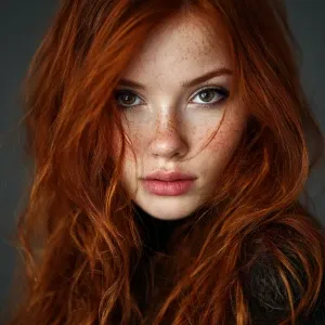 «Create an image of a stunning red-haired supermodel gracefully s...»