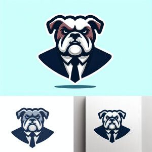 «mad bulldog business logo flipping a coin with a dollar sign on...»
