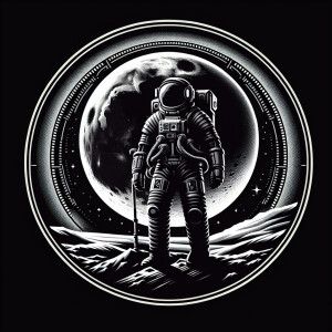 «In the stark blackness of space, a stygian lunar space pioneer s...»