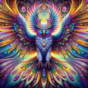 «A brilliantly radiant Psychedelic harpy, dazzling in a vivid arr...»