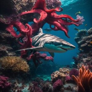 «Visualize a Sharktopus, merging the sleek body of a shark with t...»