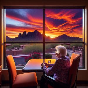 «A senior citizen relaxes in the dining room of Saddlebrooke, a r...»