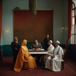«Un sacerdote y dos políticos varones y una política mujer sentad...»