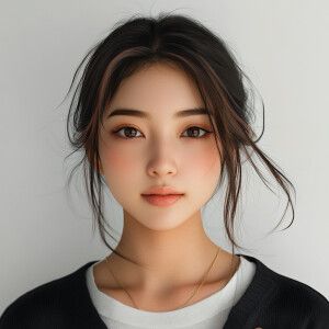 «Create an image of a cute 22-year-old Japanese woman with a clea...»
