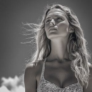 «A beautiful fair woman blue eyes, full body portrait pretty face...»