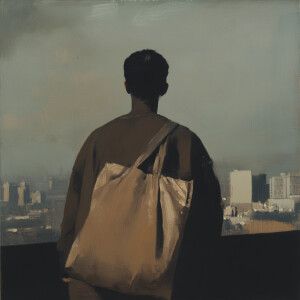 «Illustrate two superheroes on a city skyline at sunset. The firs...»
