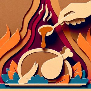 «Create an iconic image featuring a steaming turkey with gravy be...»