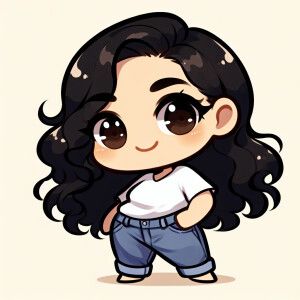 «A cartoon chibi-style character of a cheerful, plump girl with l...»