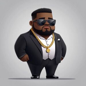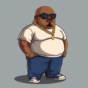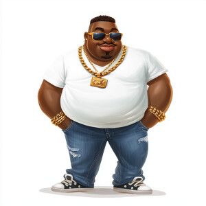 «Create a funny cartoon like overweight African American male wit...»