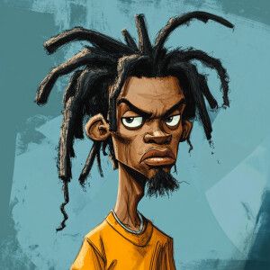 «Create a funny cartoon like African American male with dreads go...»
