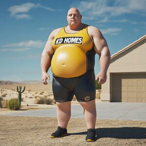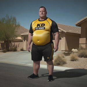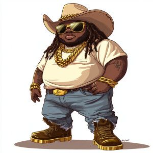 «Create a funny cartoon like overweight African American male wit...»