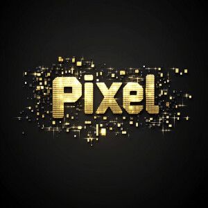«Amazing HQ logo written " Pixel " with gold and black colors and...»