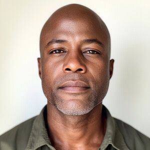 «A 45-year-old Haitian-Californian man with a clean-shaven face,...»