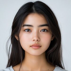 «Create an image of a cute 21-year-old Japanese woman with a clea...»