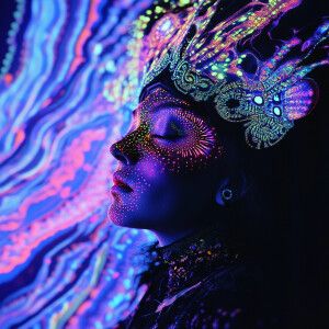 «Create an image of a beauty queen whose appearance subtly reflec...»