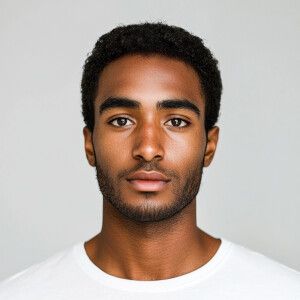 «Create an image of a 22-year-old African American man with a cle...»