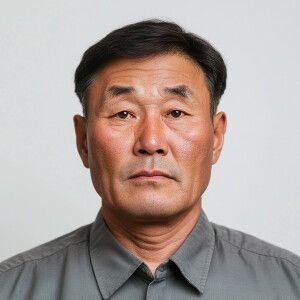 «A 55-year-old North Korean man with a clean-shaven face, looking...»