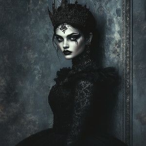 «Create an image of a beauty queen whose appearance subtly reflec...»