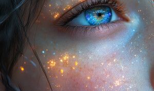 «"A hyper ultra-realistic close-up of a person's face partially s...»