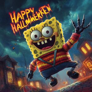 «SpongeBob SquarePants is dressed as Freddy Krueger, complete wit...»