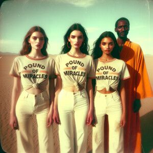 «A faded color film photograph from the early seventies of three...»