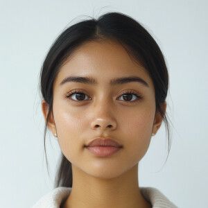 «A 21-year-old Filipina woman with a clean, makeup-free face, exu...»