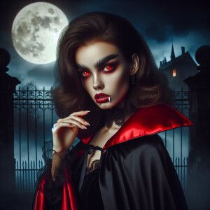 «Cara delevingne dressed as Dracula, with a black cape with red s...»
