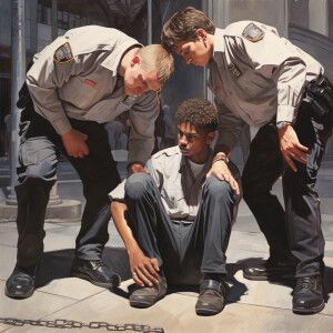 «Three white teenage boys, handcuffed»