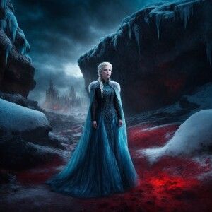 «dark art menacing elsa from frozen with cracked epidermis,glowin...»