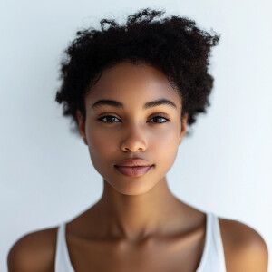 «A portrait of a cute 20-year-old Afro-Puerto Rican woman with a...»