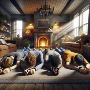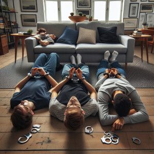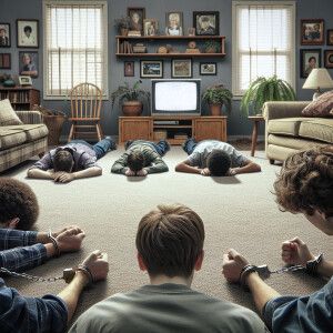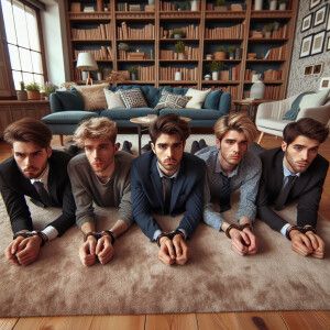«ultra-realistic image of 4 white male teens handcuffed laying fa...»