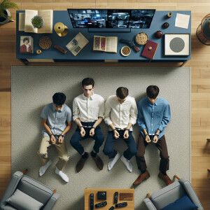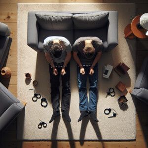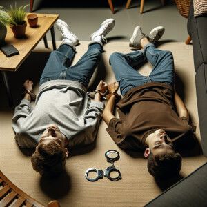 «ultra-realistic, 4 caucasian male teens handcuffed, laying face...»