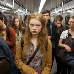 «Ultra realistic cute tween on subway»