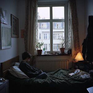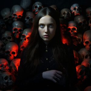 «A haunting, hyperrealistic portrait of a pale young woman with l...»