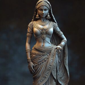 «Create an image of an elegant, ancient princess statue with a sv...»
