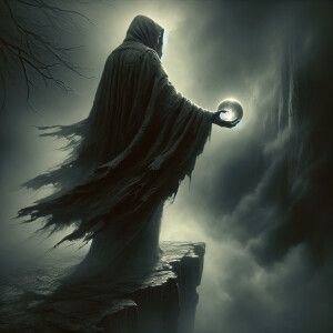«Create a photorealistic image of a humanoid draped in a hooded c...»